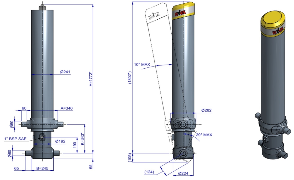 Характеристики гідроциліндра Hyva FC A169-5-07130-000-K0343 (70526580)