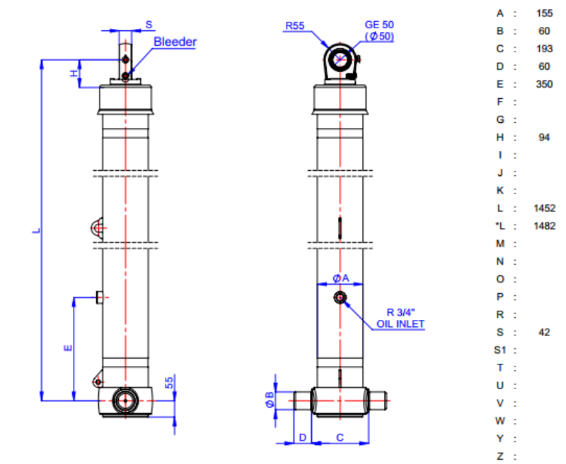 Характеристики гідроциліндра GHS 135-4-4600-L1452 TC (43135446003)