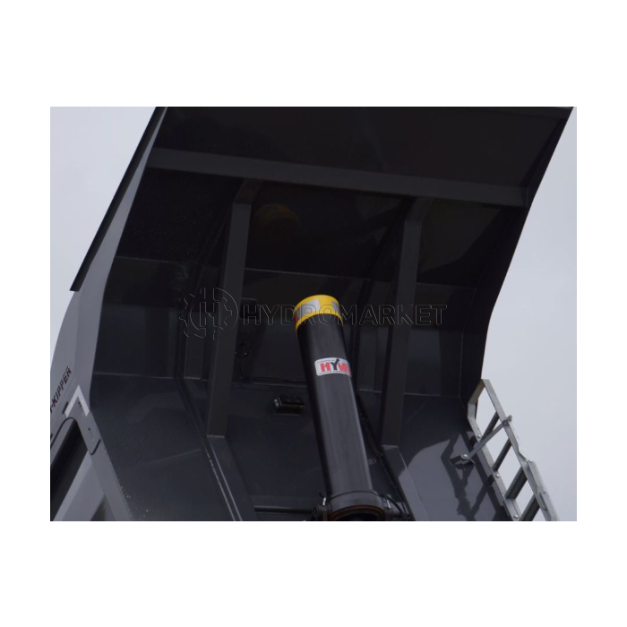 Циліндр працює при робочому тиску до 250 бар, завдяки чому підходить для експлуатації на важких самоскидах та високопродуктивній спецтехніці. У цьому виконанні циліндр має стандартне покриття (без хромування), що робить його оптимальним варіантом для техніки, яка працює в нормальних або помірно важких умовах.