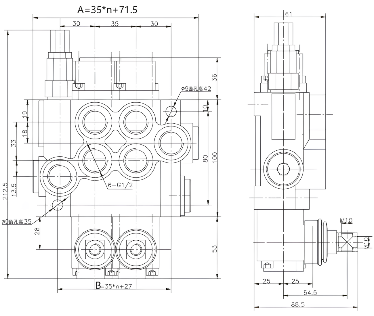 Опис / Гідророзподільник моноблочний 2P40 (2 секції, 40 л/хв, 250 бар)