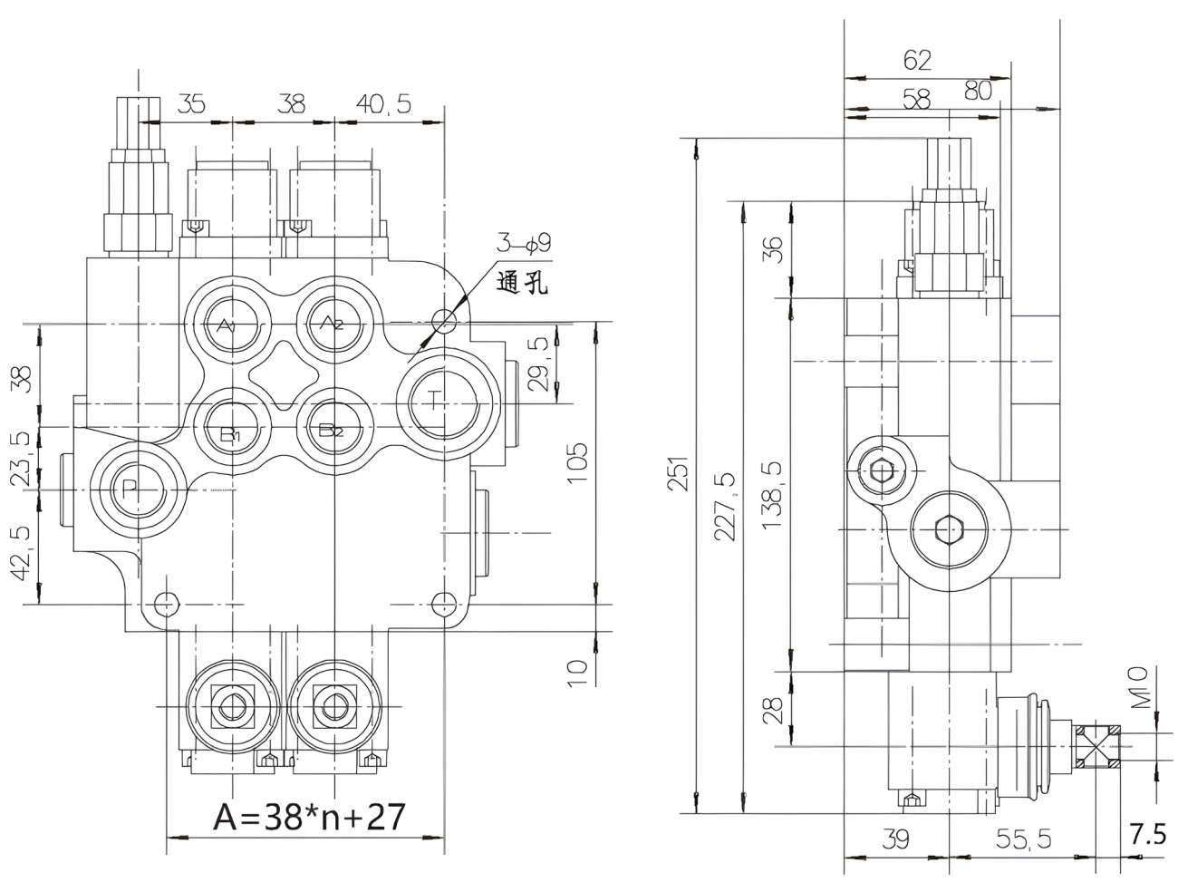 Опис / Гідророзподільник моноблочний 2P80 (2 секції, 80 л/хв, 250 бар)