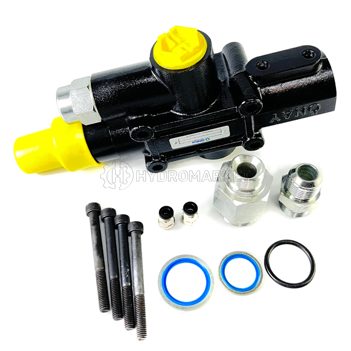 Гідророзподільник підйому кузова Onay призначений для керування потоком робочої рідини в гідросистемі. Максимальна пропускна здатність — 140 л/хв, робочий тиск — до 190 бар. Підключення здійснюється через порти розміром. Кріплення на 4 болти.