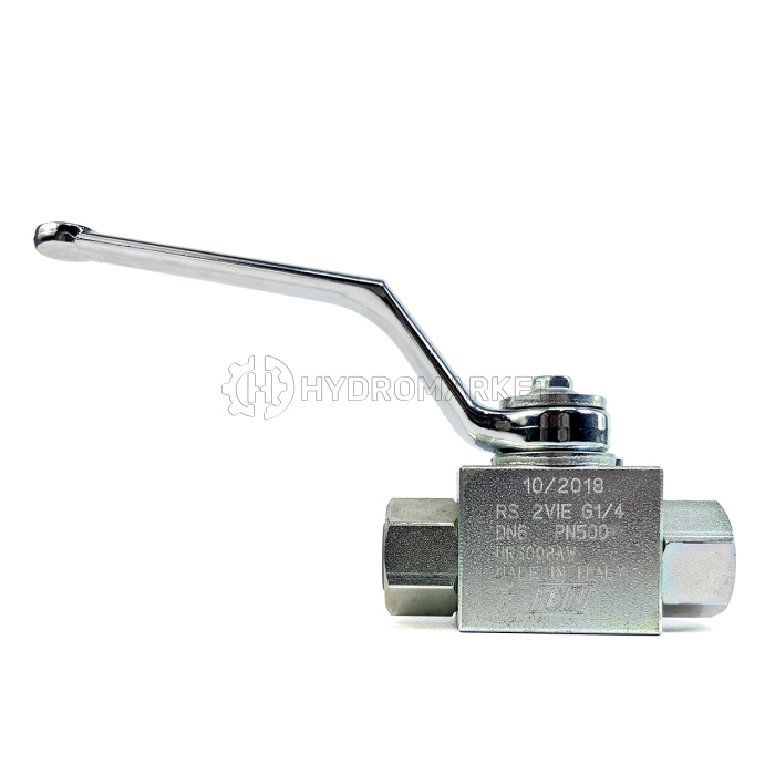 Кран двоходовий O RS2 VIE 1/4 застосовується в гідросистемах високого тиску шляхом перекриття потоку робочої рідини при повороті оператором рукоятки. Не має кріпильних отворів. Сталевий корпус має оцинковане покриття для захисту від корозії, внутрішній кульової елемент виконаний з хромованої сталі, важіль управління – з алюмінію.