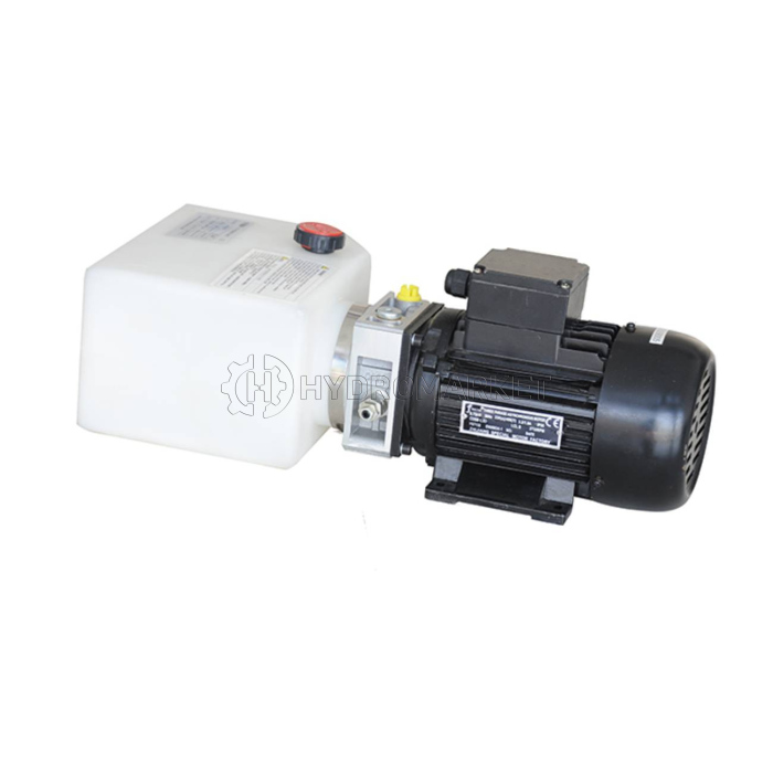 Міні-блок живлення змінного струму з підсилювачем потужності та гравітаційним опусканням. Фіксований компенсуючий клапан, що підтримує швидкість опускання у стійкому положенні.