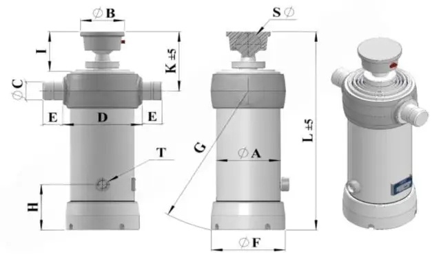З ефективним діаметром 185 мм та восьмиступеневою конструкцією циліндр забезпечує високу вантажопідйомність і плавний хід на повний робочий хід до 2400 мм, що гарантує рівномірний підйом та безпечну роботу з різними типами вантажів.