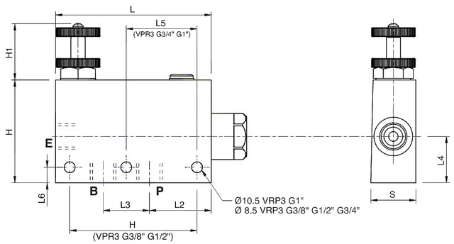 Клапан VPR3 дозволяє підтримувати постійний потік у порту P на заданому рівні, незалежно від тиску або вхідного потоку. Надлишковий потік відводиться в порт B і може бути використаний для виконання іншої функції. Порт B не залежить від змін тиску, але чутливий до змін потоку.