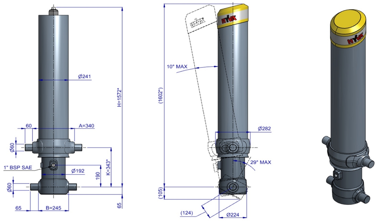 Гидроцилиндры HYVA ALPHA могут надёжно работать в любых условиях, благодаря своей конструкции. Этот цилиндр является только подъемным устройством. Он не должен использоваться в качестве структурного элемента и не должен подвергаться боковой нагрузке. Клапан опрокидывания должен иметь перепускное давление на входе в цилиндр не выше максимально допустимого рабочего давления.