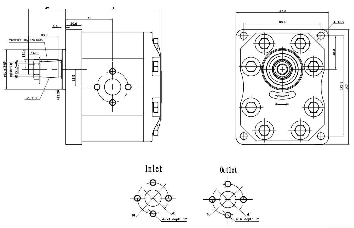 Выходное отверстие: D - 39.7, M - M8, d - 19