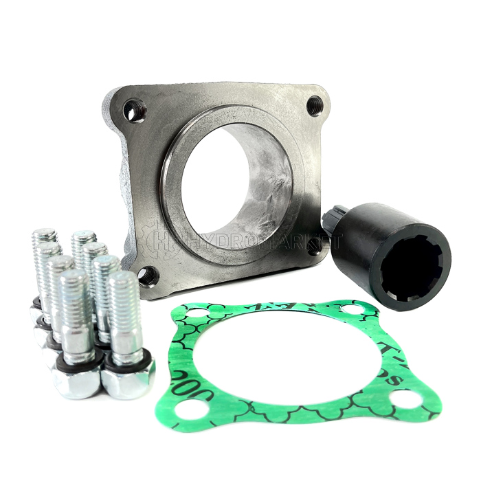 Гидравлический адаптер Hiposan 36002110 для насосов стандарта ISO предназначен для надежного соединения насоса с приводом или редуктором техники. Комплект включает фланец, шлицевую втулку, прокладку и крепёж, обеспечивая точную центровку и герметичность соединения.