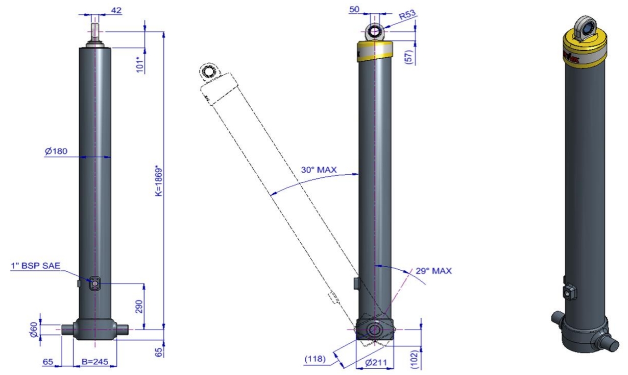 | Тип крепления цилиндра | Проушины |