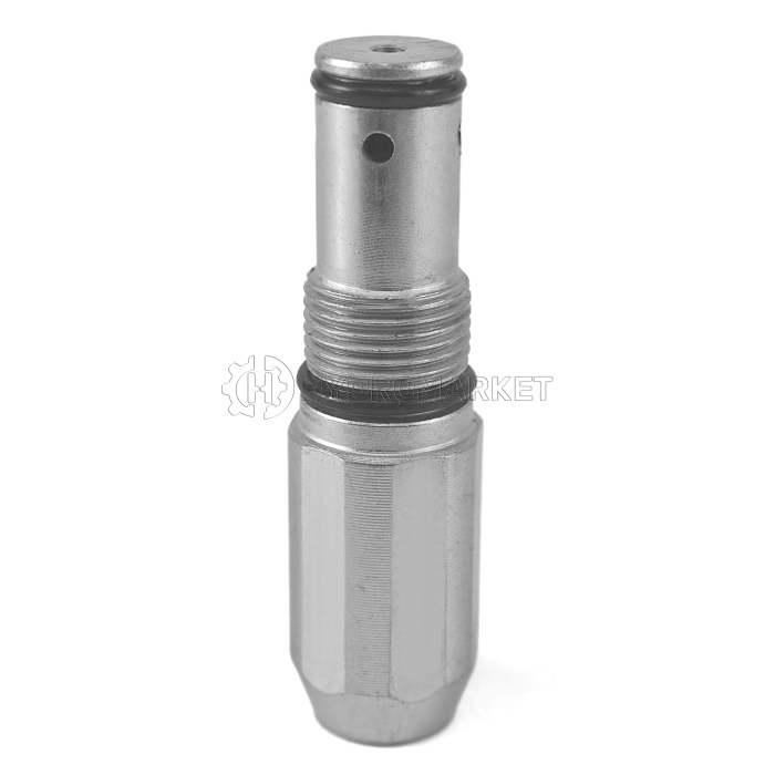 Данный элемент — сменный картридж предохранительного клапана гидромодуля HYVA, работоспособный при давлении до 220 бар. Его цель — защищать гидросистему от избыточного давления. В зависимости от требуемого уровня давления всегда можно заменить картридж на другой фиксированный номинал, что делает систему гибкой и надёжной.