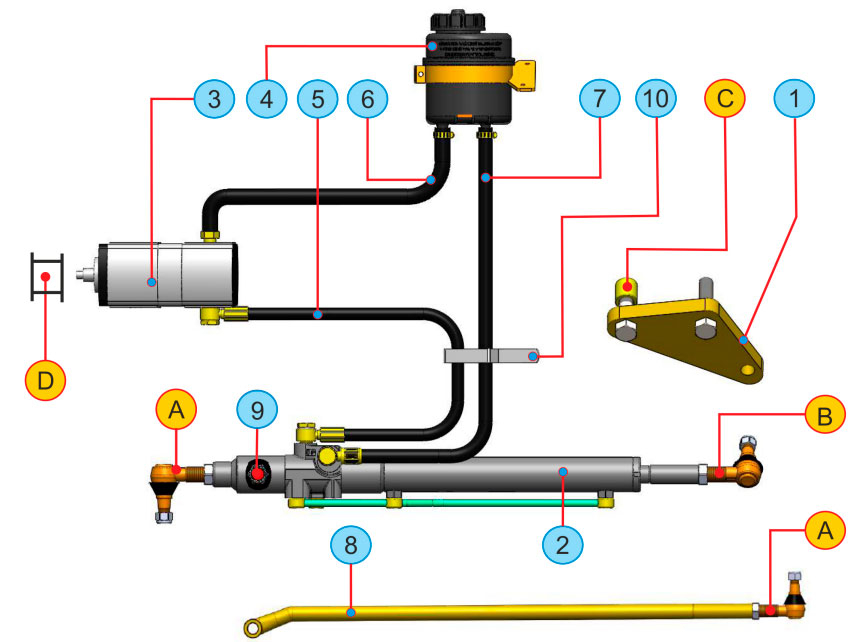Описание / Комплект рулевого управления для трактора (Deutz 6206-8206) Hidros