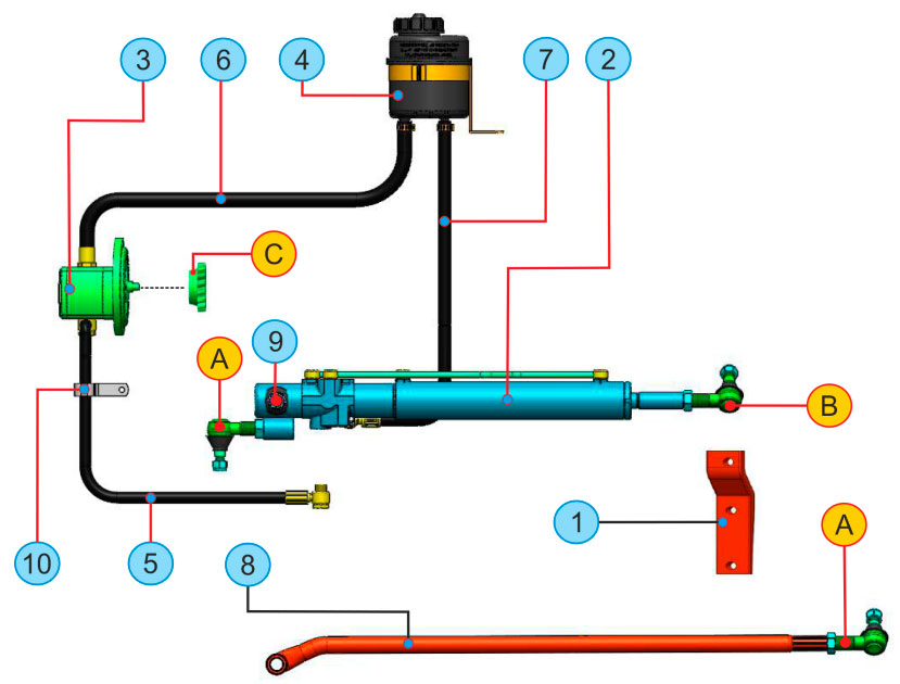 Описание / Комплект рулевого управления для трактора (STEYR 2043-8043) Hidros