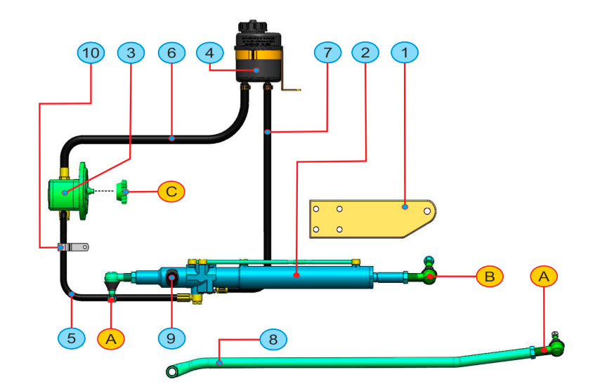Описание / Комплект рулевого управления для трактора (STEYR 768-8073) Hidros