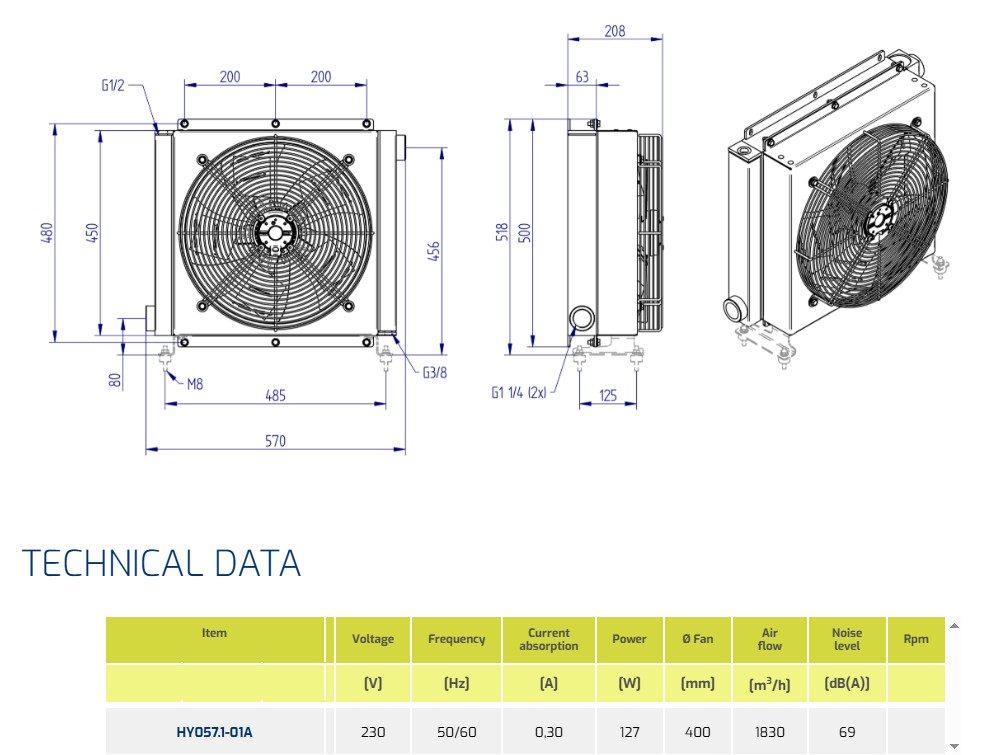 Модель HY05701 из серии HY — надёжный масляный охладитель с вентилятором на переменном токе (AC), предназначенный для эффективного охлаждения гидравлической жидкости. Используется для повышения надежности гидросистем, замедления износа масла и повышения производительности оборудования.