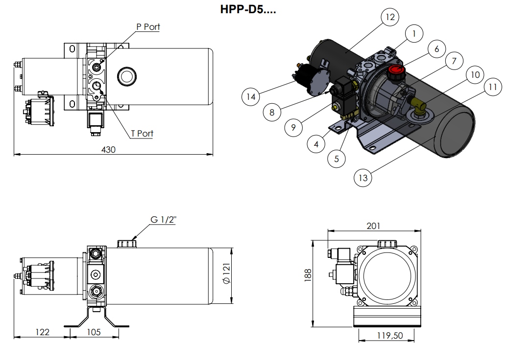 Описание / Мини-маслостанция HYDRO-PACK HPPD5-1170 (12В, 0.8 кВт, бак 2 л)