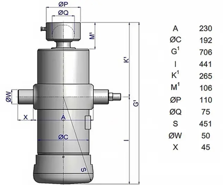 Представляем подкузовной гидравлический цилиндр Hyva 169-4-1820-K265-50-3/4 HC, который отличается высокой эффективностью и надежностью в работе. С его эффективным диаметром 169 мм и четырьмя штоками он способен поднимать вес от 22 до 28 тонны, достигая общего хода до 1820 мм. Максимальное рабочее давление составляет 220 бар, что обеспечивает безопасное и стабильное поднятие груза. Объем цилиндра составляет 30,6 л, а вес — всего 102 кг, что делает его компактным и легким для установки и обслуживания. Цилиндр имеет хромированную поверхность, что гарантирует его долгий срок службы и устойчивость к коррозии. Удобный впуск масла диаметром 3/4˝ BSP обеспечивает простоту в обслуживании и заправке.