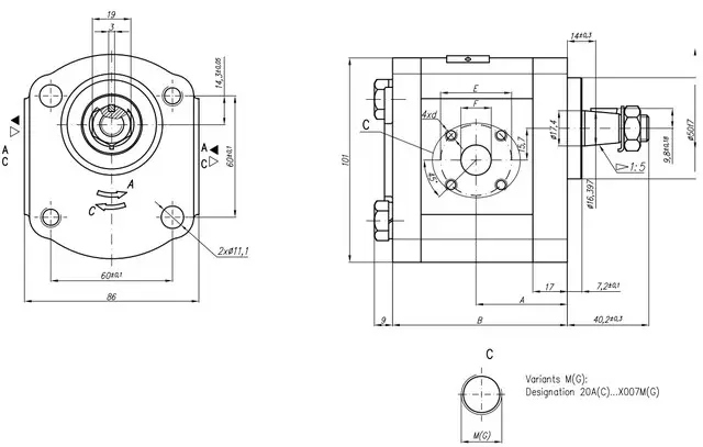 Описание / Шестеренчатый гидравлический насос Hydro-pack 20А16Х007 (16см3, 250 бар, 2500 об/мин)