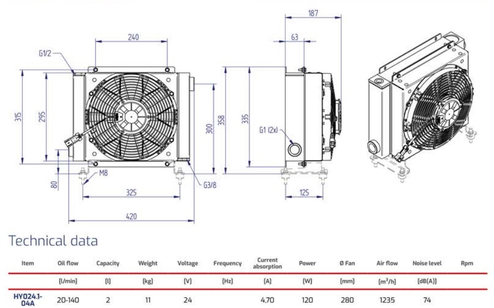 Охладитель НY02404 отлично подходит для компактных гидравлических систем, мобильного и промышленного оборудования, где требуется эффективное охлаждение при ограниченном пространстве и питании от 24 В.