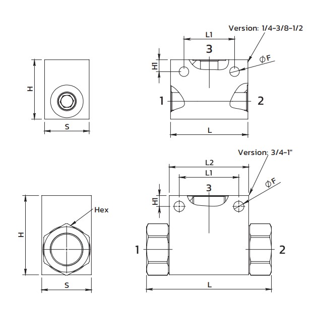 Gumeg SHV-M 1/4" — компактний селекторний гідравлічний клапан (клапан вибору тиску), призначений для з'єднання двох ліній тиску та передачі потоку з тієї лінії, де тиск вищий.