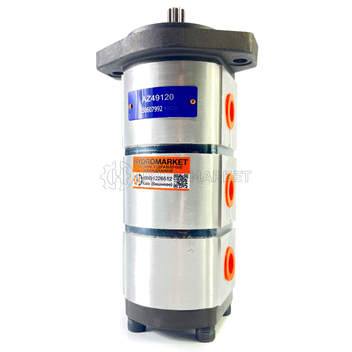 Гідравлічний шестеренний насос моделі 222A11/8/6X120JD / AZ49120 групи 20+20+20, з об'ємом 11+8+6 см³/об, забезпечує стабільну роботу в гідросистемах спецтехніки з напруженим навантаженням. Призначений для машин, де потрібне компактне, надійне рішення з високим ККД для модернізації гідросистем тракторів, будівельної та сільськогосподарської техніки.